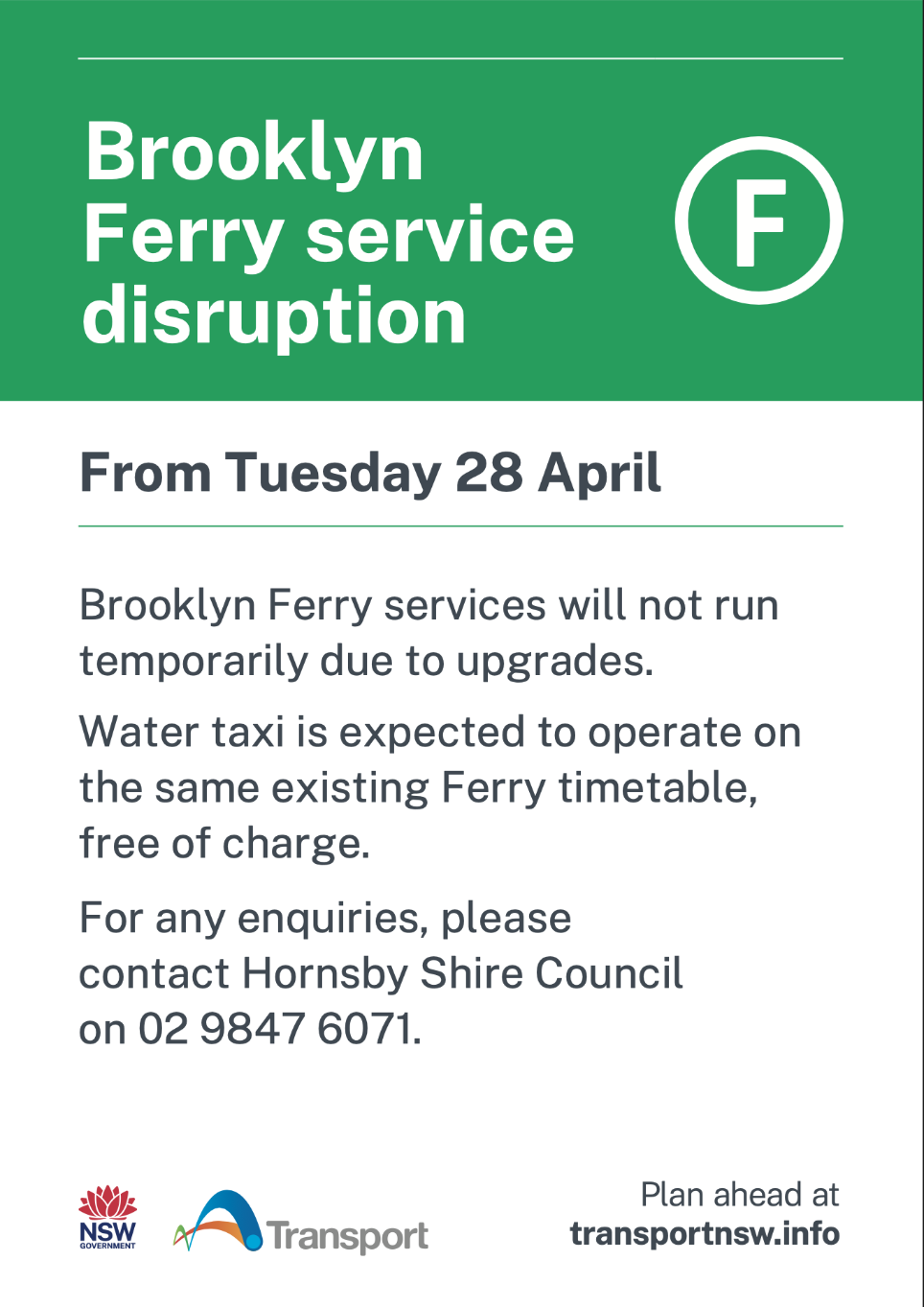 Contact Hornsby Shire Council on 02 98476071 for any additional information